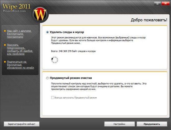 ![]() Решил познакомить вас с программой Wipe, которая позволяет вам выполнять различные операции с временными файлами на вашем компьютере, в частности удаляет их, с целью освободить место на жестких дисках, ускорить работу системы. Интерфейс переведен на Русский язык, пользоваться программой крайне просто, я думаю проблем возникнуть не должно. |