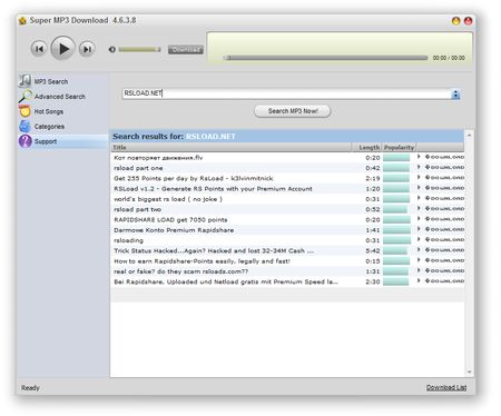 ![]() В очередной раз обновилась программа Super MP3 Download, сразу стоит отметить, что Антивирусы срабатывают на патч как на угрозу, если переживаете, то не стоит грузить этот архив, я воспользовался, ничего страшного не случилось. Данная утилита поможет вам загрузить свыше ста миллионов песен, которые доступны в открытом доступе, вам нужно просто вписать название трека в строкк поиска, после перед вами появится результат, можно переходить к загрузке песни. |