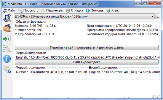 ![]() Хочу вам предложить новейший обзор программы MediaInfo, я уже очень давно ею пользуюсь, могу написать только рекомендовать ее всем, цель данной разработки в том, что вы можете получать подробную информацию о видео файле, также есть поддержка работы и с аудио файлами, просто загружаем их и можно просмотреть довольно большой список разных параметров, которые зачастую интересуют нас, особенно если вы создаете раздачи на торренте, скачать MediaInfo 0.7 можно ниже. ![]() Конечно стоит отметить и возможность просматривать тэги, остальное вы можете посмотреть на картинке, тут вам и качество видео, разрешение, формат, путь, количество рефреймов и прочие другие данные. MediaInfo максимально простой интерфейс, который в свою очередь работает с Русским языком, файлы можно просто перетаскивать в основное окно, и абсолютно не обязательно открывать их через Меню. Про изменения в этой версии ничего написать не могу, надеюсь исправлены проблемы, которые были.