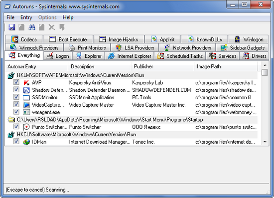 ![]() Сразу после того как обновилась Process Explorer, разработчики обрадовали нас и новой версией программы AutoRuns, с помощью этой маленькой утилиты, вы в силах контролировать приложения инсталлируемые при старте вашей системы. Помимо всего прочего, дополнительно можно вести контроль за компонентами и сервисами системы, которые также стартуют вместе с Windows, предлагаю скачать AutoRuns ниже. ![]() Если вы внимательно рассмотрите скриншот, то я думаю станет все понятно, за чем именно вы сможете наблюдать и контролировать, тут вам и ключи реестра, автозагрузка, параметры браузера IE, дрова и так далее. AutoRuns может не только контролировать, но и выключать интересующие вас процессы, в общем для этого у вас будут все инструменты. В этой версии устранено несколько ошибок, некоторые из которых были напрямую связаны с неправильным отображением информации. Полное название: AutoRuns.10.05