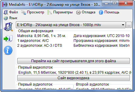 ![]() Хочу вам предложить новую версию программы MediaInfo, давно ею пользуюсь, могу написать только рекомендовать ее всем, цель разработки в том, что вы сможете получать подробную информацию о видео файле, также есть поддержка работы и с аудио файлами, просто загружаем их и можно просмотреть довольно большой список разных параметров, которые зачастую интересуют нас, особенно если вы создаете раздачи на торренте, скачать MediaInfo 0.7 можно ниже. |